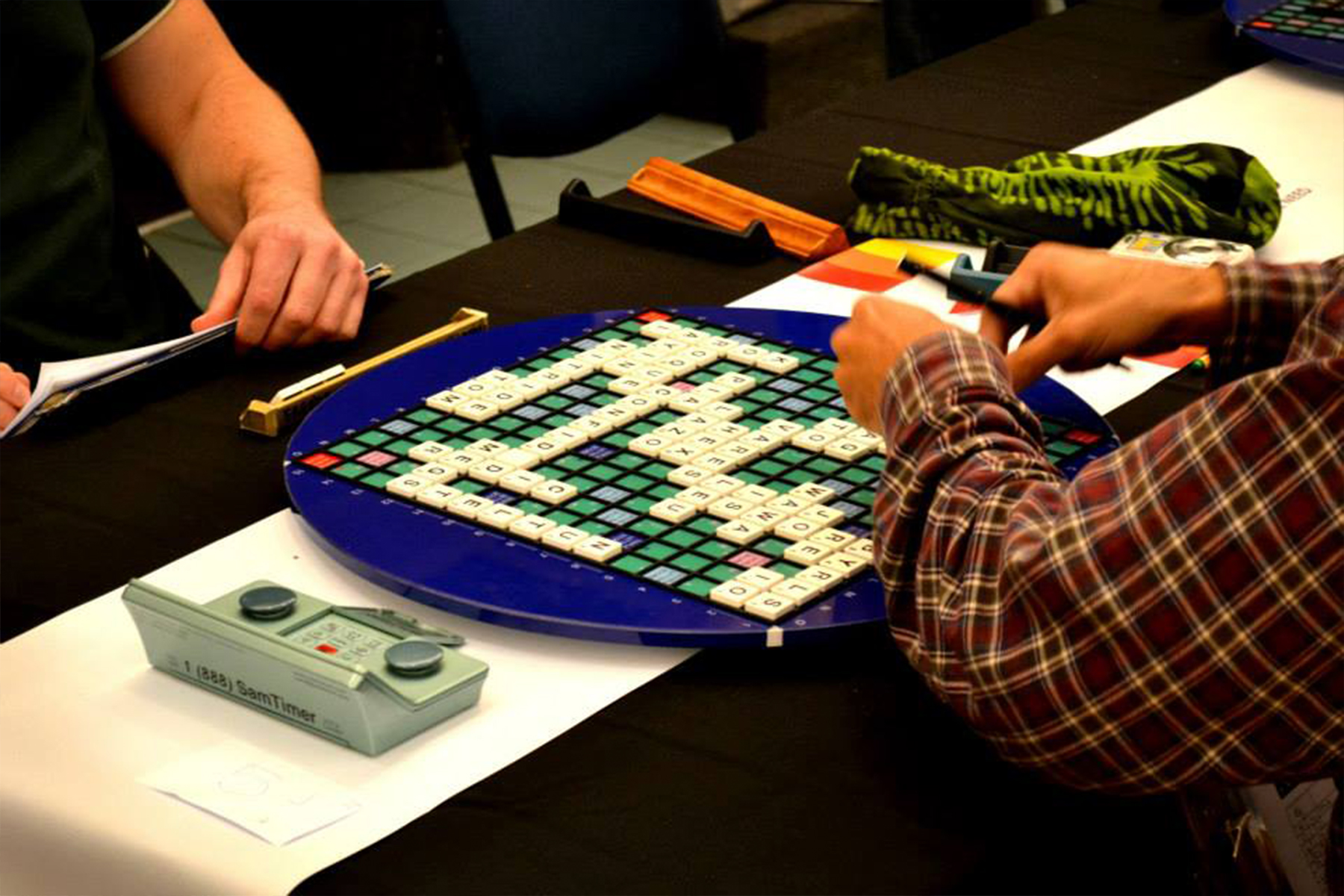 • The board’s round shape is a distinctive feature aimed at preventing players from accidentally hitting their tile racks, providing a more comfortable and unobstructed playing area.