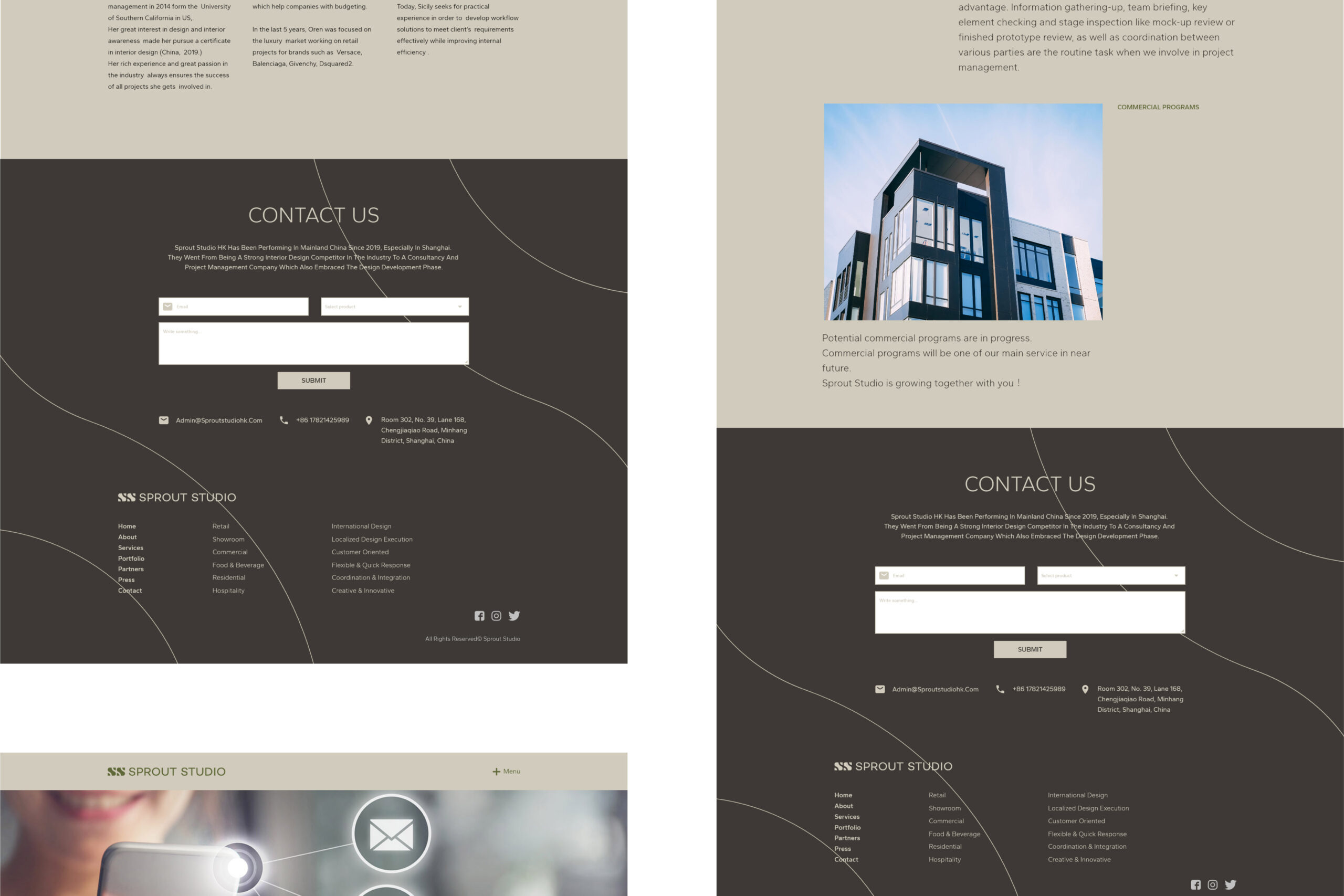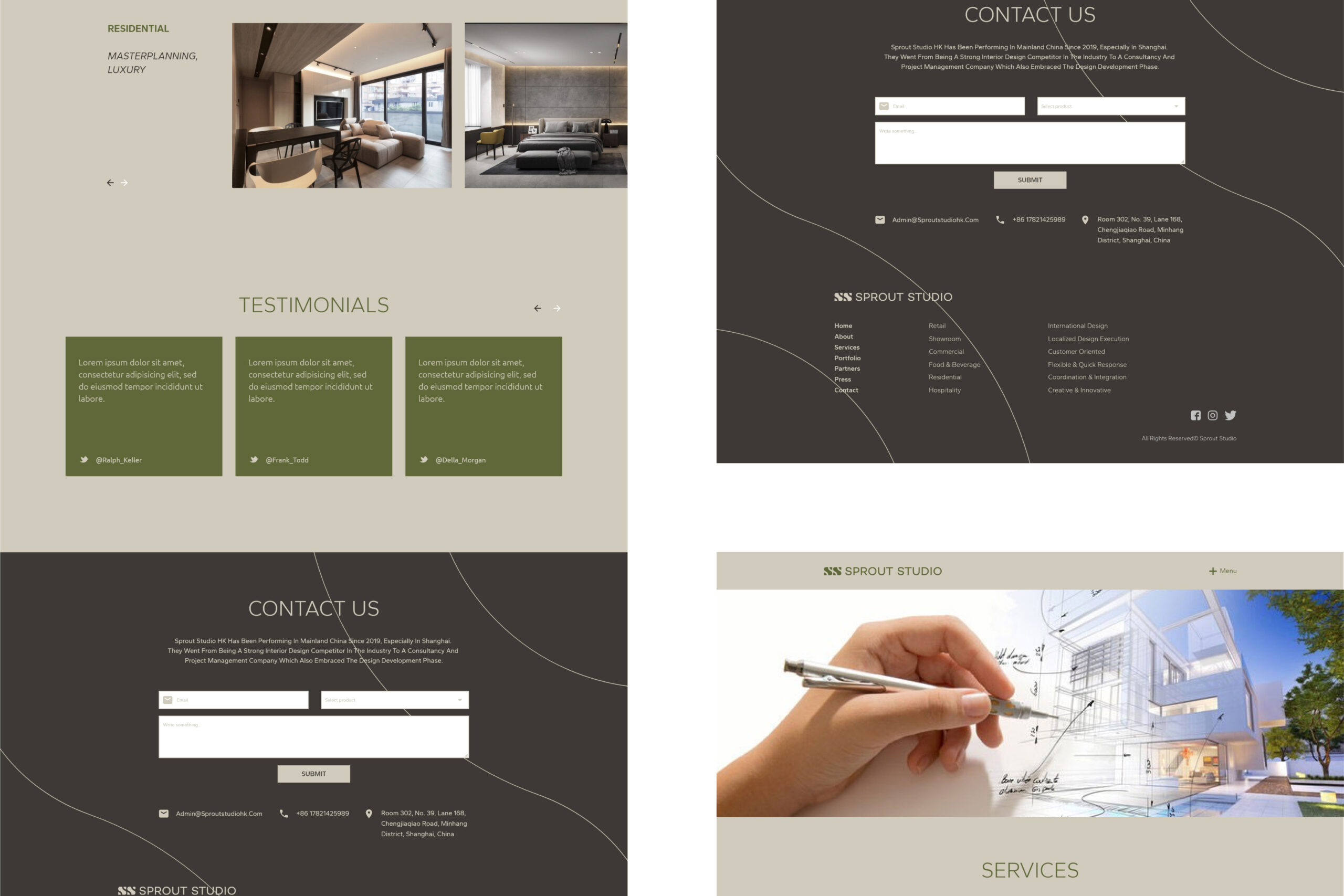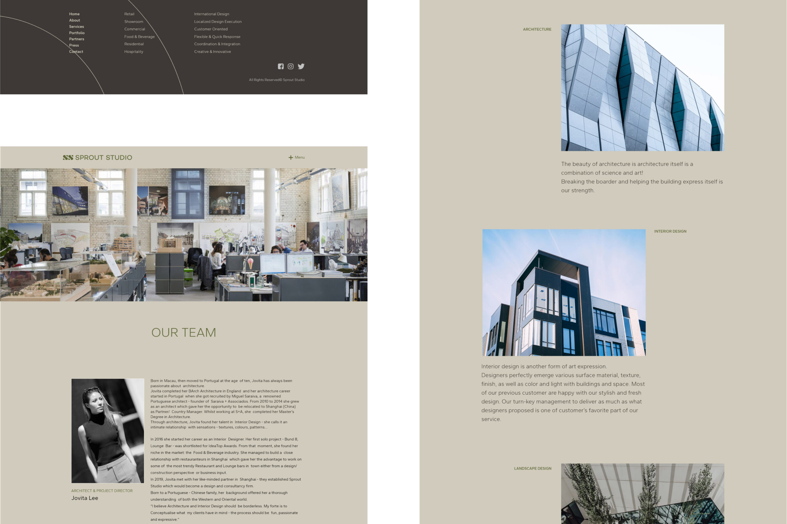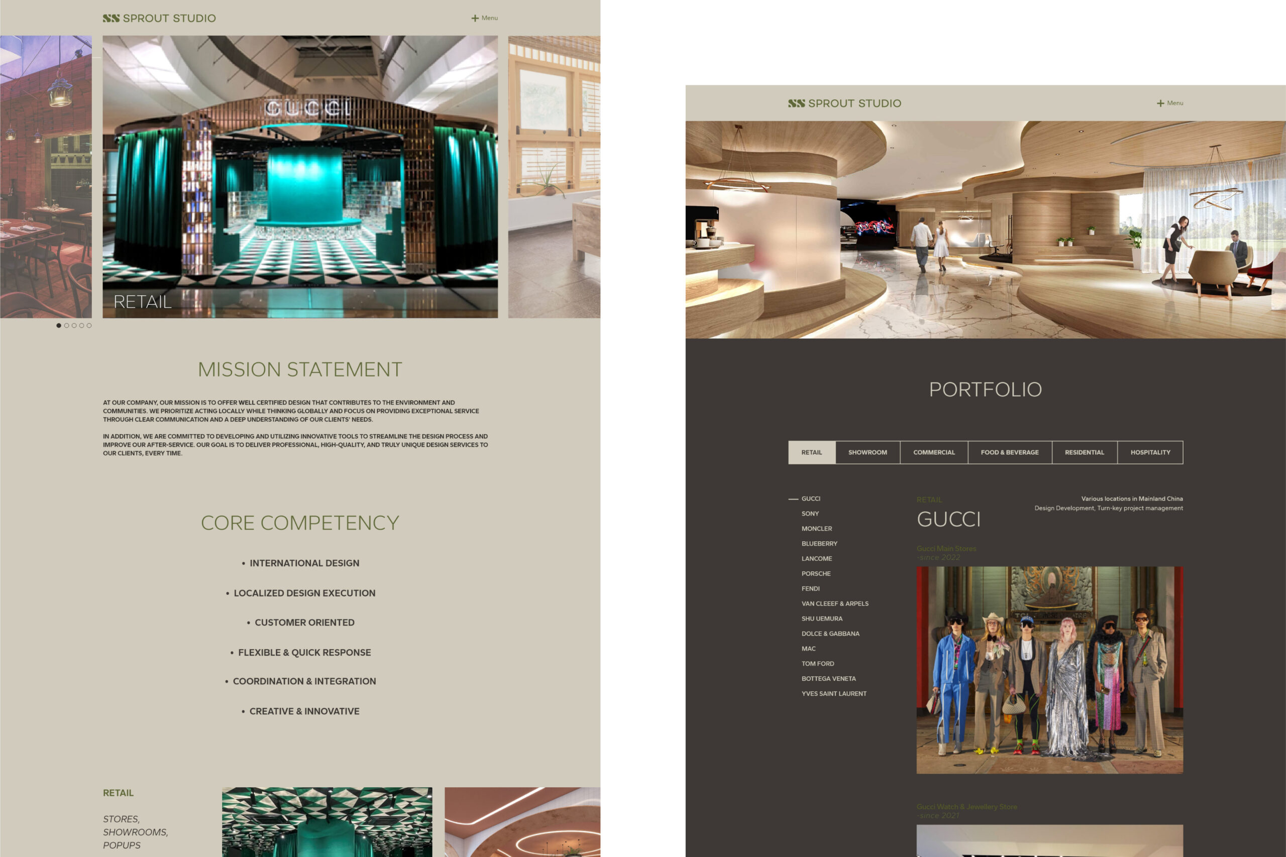 Research and Analysis: Conducted comprehensive research on Sprout Studios’ previous projects, target audience, and competitors. Analyzed design trends in luxury retail and high-end architecture websites.